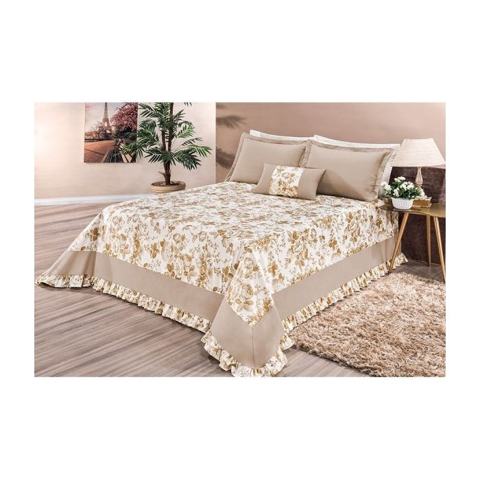 Kit Jogo de Cama Casal Queen Maravilha Flor Avelã 05 Peças