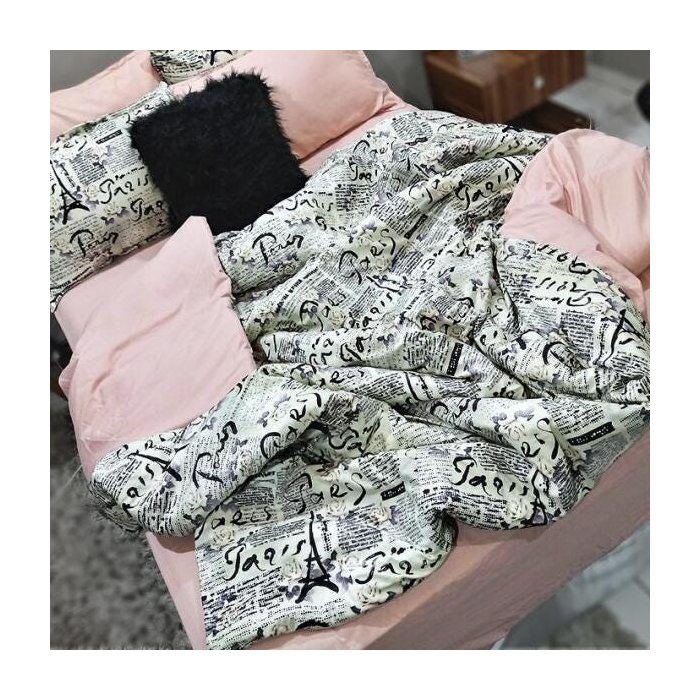 1 edredom dupla face com enchimento 2,00x2,30cm - frente estampa paris vintage - costas rose meio tom