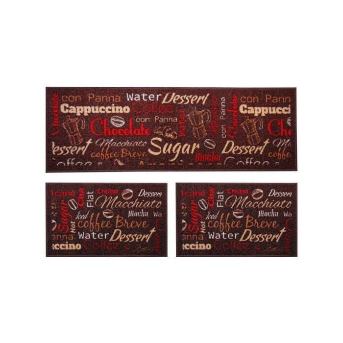 Kit Jogo De Cozinha 3 Peças Tapetes + Passadeira Marrom