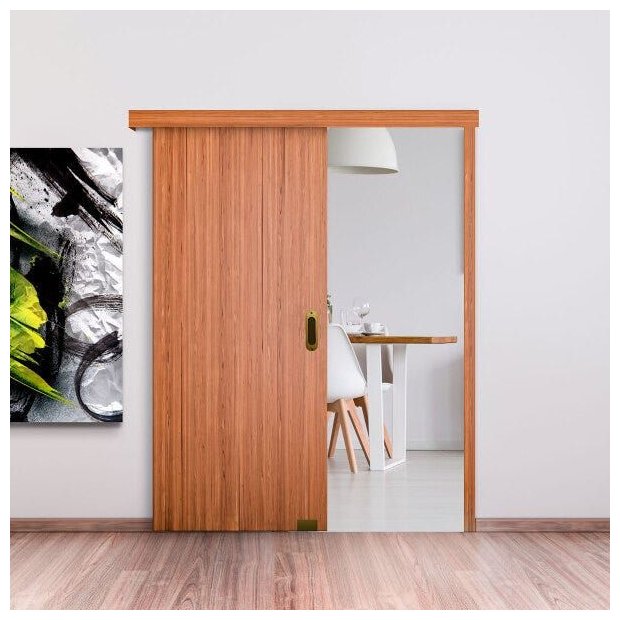 Kit de correr ferragens e trilho em alumínio polido e caixilhos em madeira. Tudo o que você precisa para a montagem de uma porta camarão