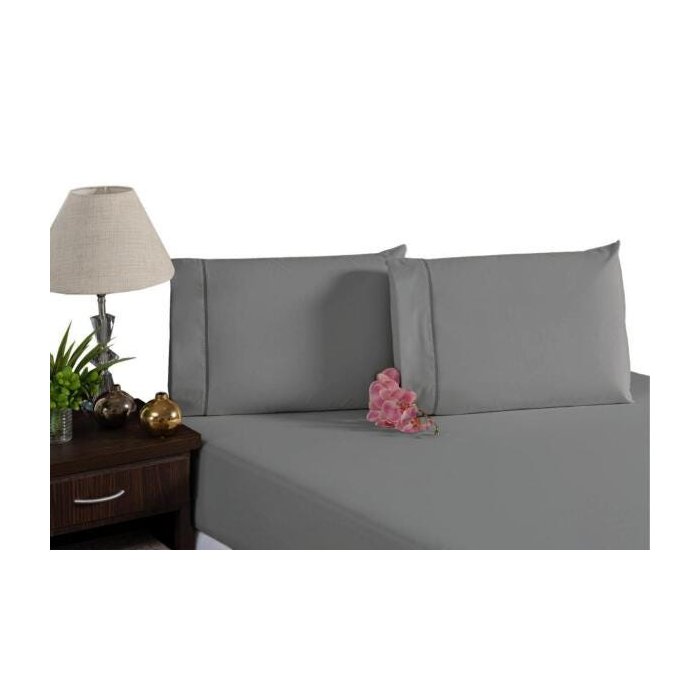 Kit Jogo De Lençol Casal King Ponto Palito Cinza 3 Peças Cinza