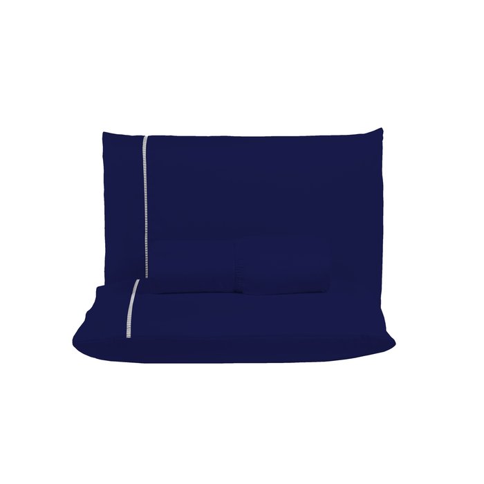 Kit Jogo de Lençol Queen Ponto Palito 400 Fios com Elástico e Fronhas 3 Peças:azul Marinho AZUL MARINHO
