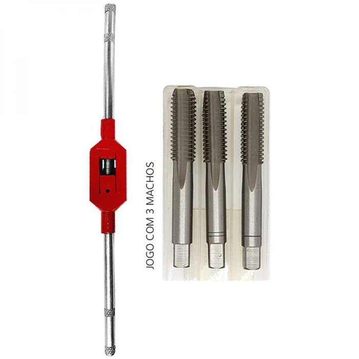 Kit Jogo de Macho - M14 x 2 + Vira Macho Desandador Nº 3 O QUE É O MACHO MANUAL O Macho Manual é uma ferramenta capaz de realizar o processo de abertura de rosca no material. Hoje no mercado temos diversos modelos e tamanhos, desde os de rosca Métrica Grossa, Métrica Fina, Polegada Fina/Grossa, aos BSP utilizados em tubos. Comumente fabricados entre Aço Rápido ou Aço Liga, eles possuem esse leque de variedades, sendo de grande importância saber o modelo exato que melhor te atende. PARA QUE SERVE O MACHO MANUAL Como mencionado, o macho manual torna possível a abertura de rosca em diversos tipos de materiais. PASSO A PASSO DE COMO SE UTILIZAR O MACHO MANUAL O primeiro objetivo a se fazer, é realizar o furo na peça com a broca de diâmetro que melhor se adequa ao macho manual que será utilizado. Machos de medida M6 X 1 requer uma broca de diâmetro 5,0mm, por exemplo. Após realizar o furo, é preciso acoplar o macho em um vira macho desandador, ou em tornos mecânicos, com a máquina desligada. No desandador, o encaixe é feito juntando o quadrado localizado na parte superior do macho. Para se ter compatibilidade, a medida do desandador deverá ser congruente com a ferramenta. (Esta etapa aconselha-se também, utilizar os machos obedecendo a ordem correta de passagem. Macho com apenas uma marcação em sua haste, deverá ser utilizado primeiramente, e em seguida, o macho com 2 riscos. Kits que apresentam 3 ferramentas em seu conjunto, comumente possuem uma ferramenta sem nenhuma marcação. Porventura, este deverá ser utilizado por último, dando o acabamento no material). É um procedimento leve, girando no sentido horário e anti-horário, voltando a ferramenta em uma execução de vai e vem. Sendo de muita importância também, o uso de fluídos de corte durante a operação. ITENS INCLUSOS NO KIT - (01) Jogo de macho M14 X 2,0;