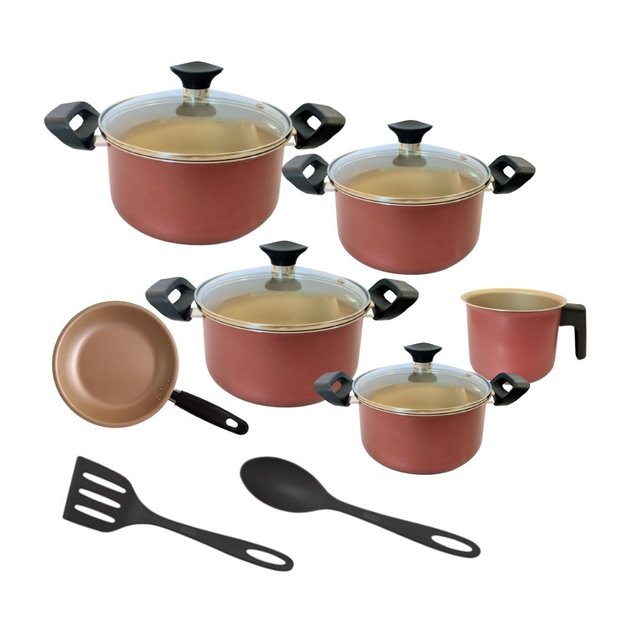 Jogo de Panelas Antiaderente 8 Pçs Teflon Cor Cereja