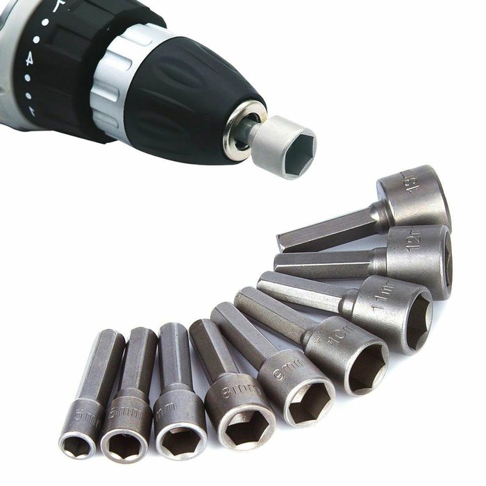 Jogo de Bits para Parafusadeira haste 1/4 - 9 peças: 5 a 13 mm