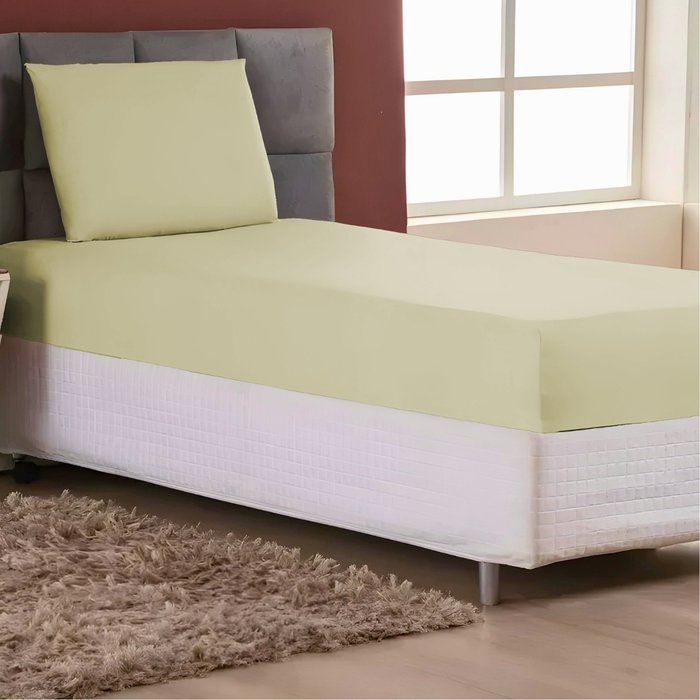 Kit Jogo Lençol Solteiro Elástico e Fronha 2pçs 400 Fios - Marfim