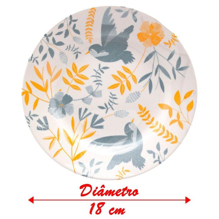 Kit Jogo Pratos Sobremesa Lanche 8pçs P/8 Pessoas Bem Te Vi -