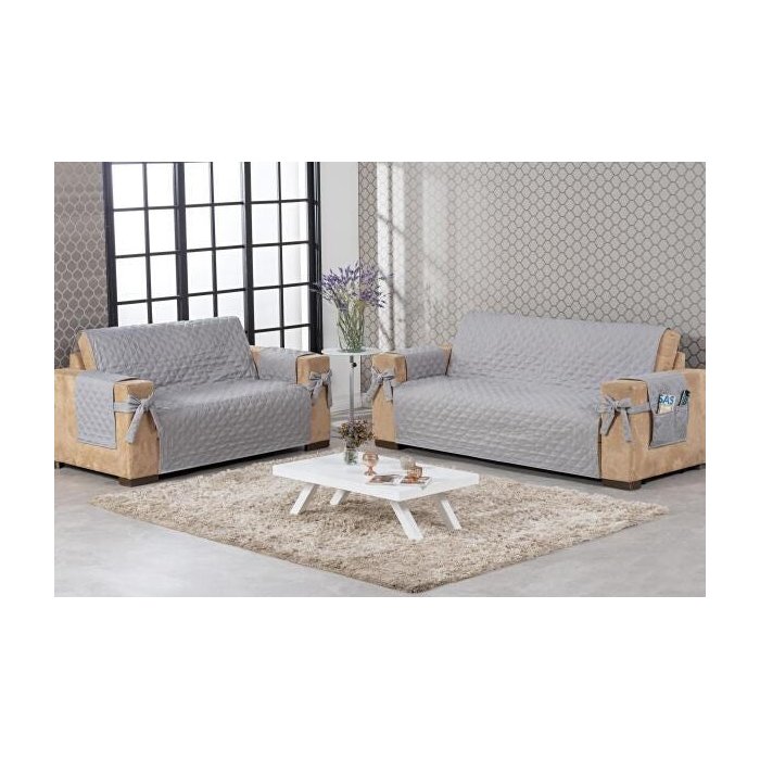 Kit Jogo Protetor de Sofá 2 e 3 Lugares com Laço Cinza