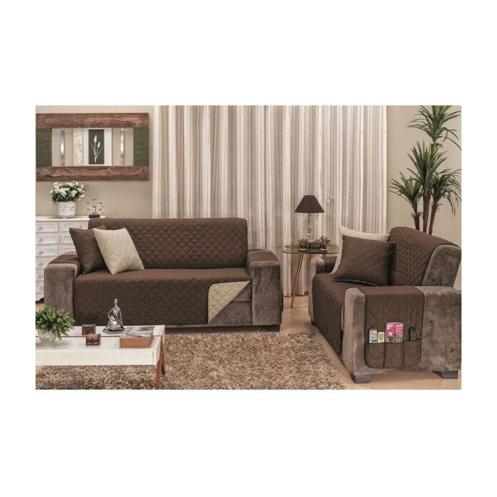 Kit Jogo Protetor de Sofá Impermeável e 4 Capas de Almofada
