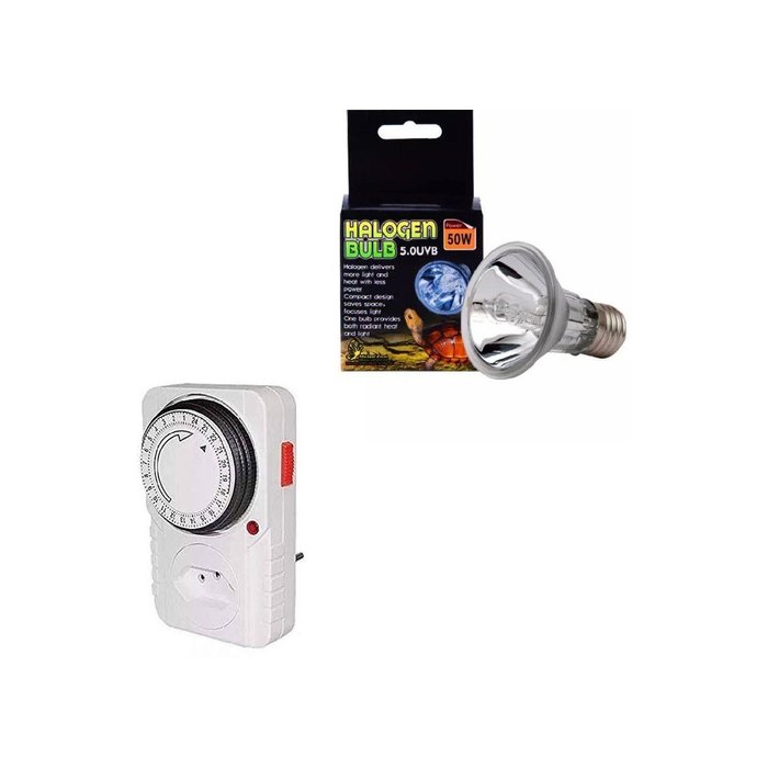 Kit Lâmpada 5.0 220v 50w Temporizador Analógico Terrario Halogen Bulb