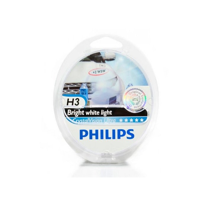 Kit Lâmpada Philips Crystal Vision H3 55w 12v + Par de Pingos - Efeito Xenon