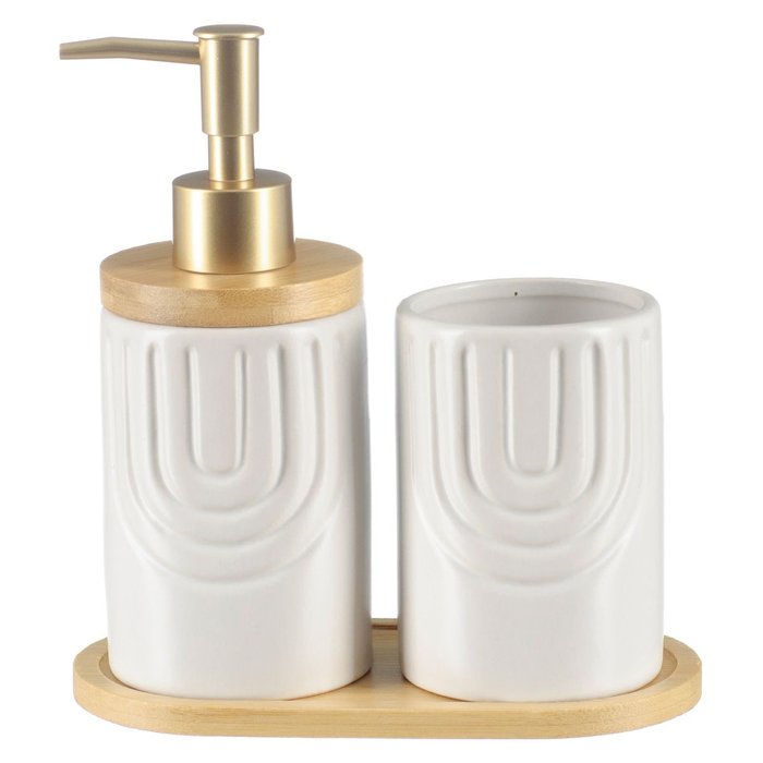 Kit Lavabo Banheiro Bambu Porta Sabonete Líquido Escova 887 Branco