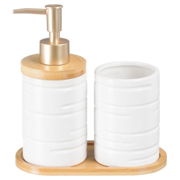Kit Lavabo Banheiro Bambu Saboneteira Líquida Escova / 885 Branco
