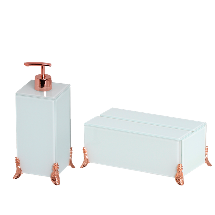 KIT LAVABO BANHEIRO LUXO VIDRO 2 PEÇAS: BRANCO ROSÊ GOLD