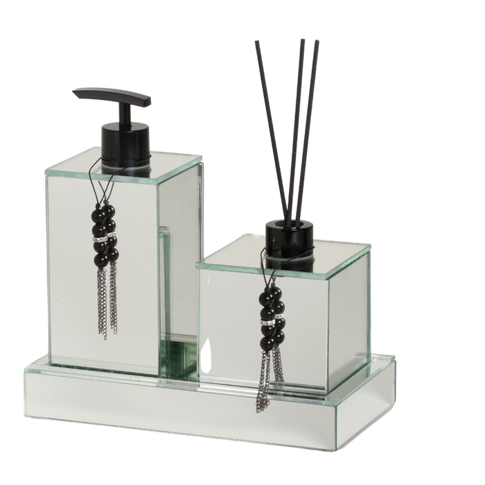 KIT LAVABO BANHEIRO LUXO VIDRO 3 PEÇAS: ESPELHO PRETO ESPELHO PRETO