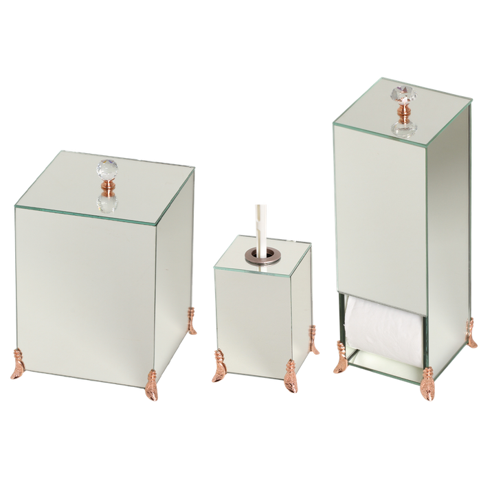 KIT LAVABO BANHEIRO LUXO VIDRO 3 PEÇAS: ESPELHO ROSÊ GOLD ESPELHO ROSÊ GOLD