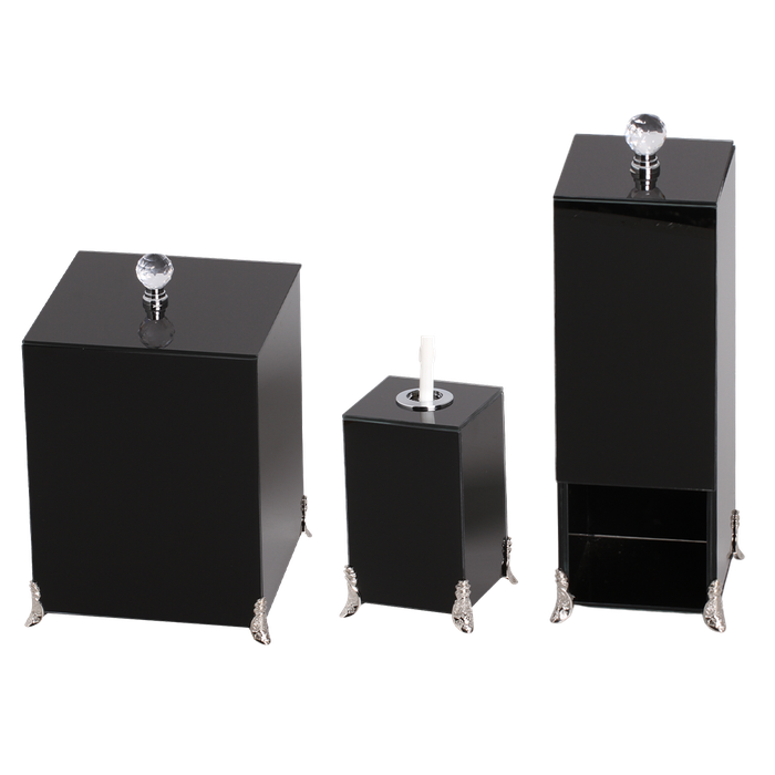 KIT LAVABO BANHEIRO LUXO VIDRO 3 PEÇAS: PRETO PRATA PRETO PRATA