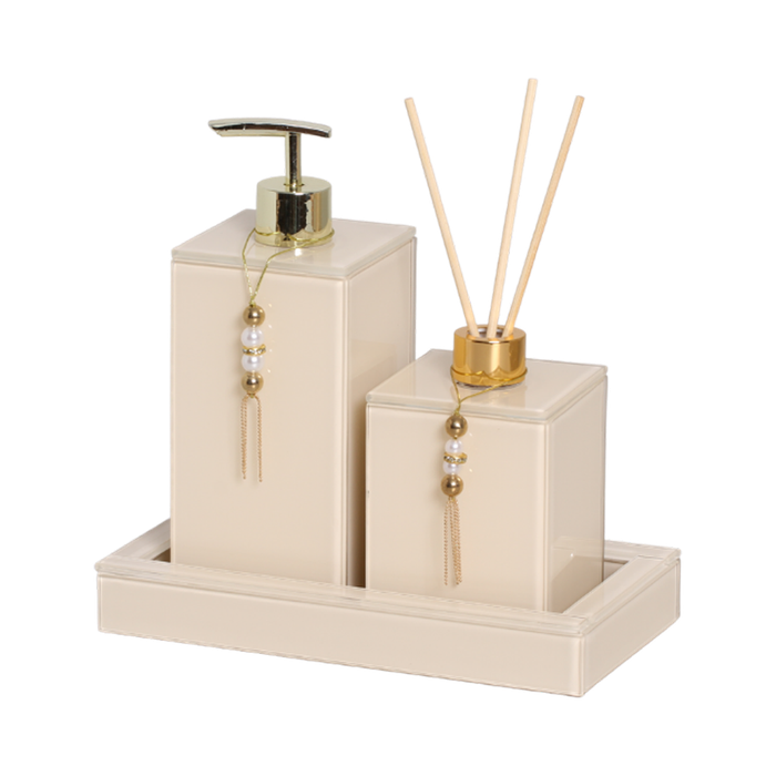 KIT LAVABO BANHEIRO LUXO VIDRO 3 PEÇAS: VANILLA DOURADO