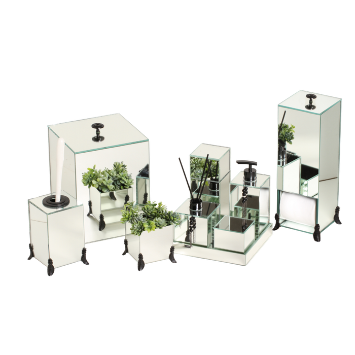 KIT LAVABO BANHEIRO LUXO VIDRO 9 PEÇAS: ESPELHO PRETO ESPELHO PRETO