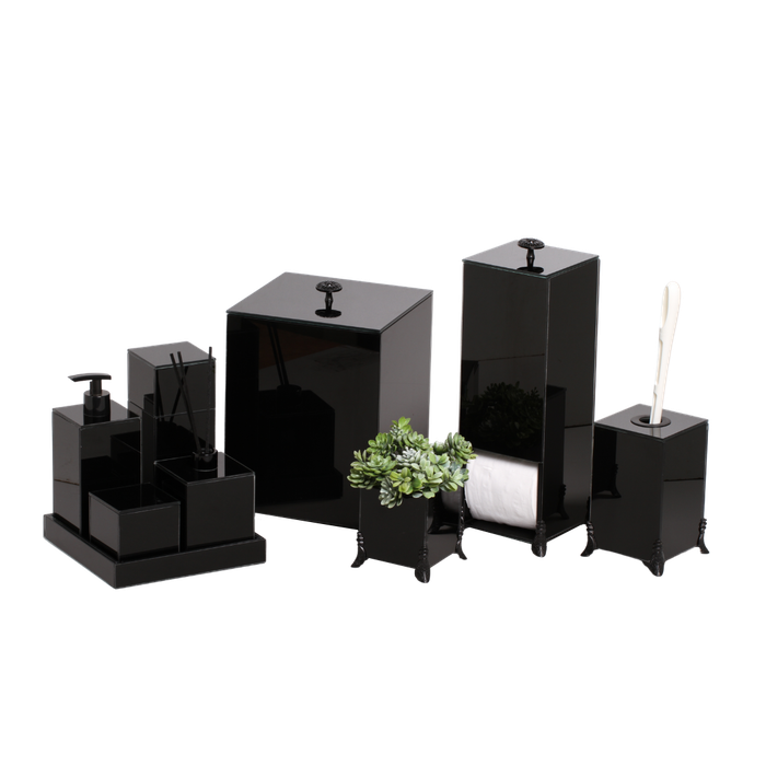 KIT LAVABO BANHEIRO LUXO VIDRO 9 PEÇAS: PRETO PRETO PRETO PRETO