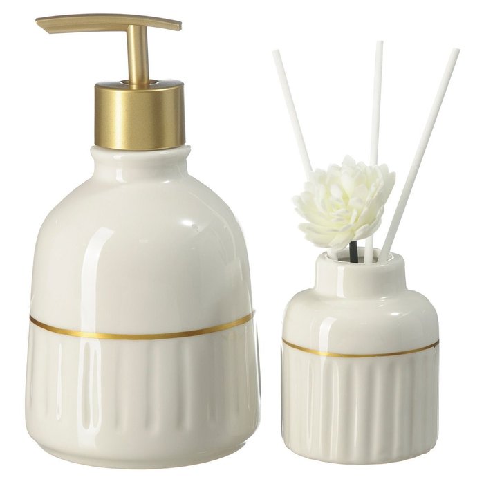 Kit Lavabo Difusor Banheiro Porcelana Dispenser Líquido Luxo Branco