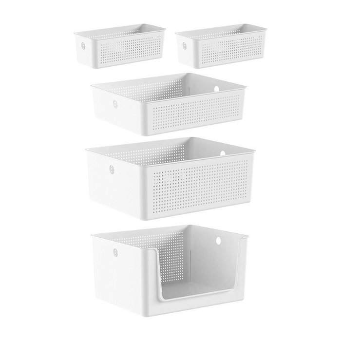 Kit Lavandeira Flow com 5 Cestos Branco ou Branco