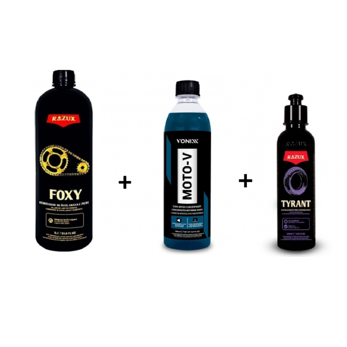 Kit Limpeza Motos Foxy 1l + Moto-v 500ml + Tyrant 240ml Vonixx
