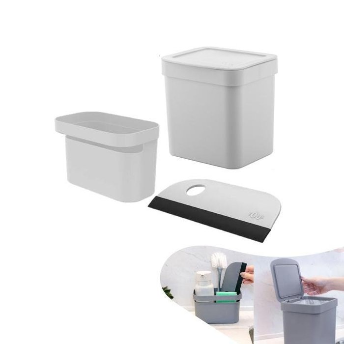 Kit Lixeira 2,5l Porta Detergente Rodo Pia Cozinha - Branco