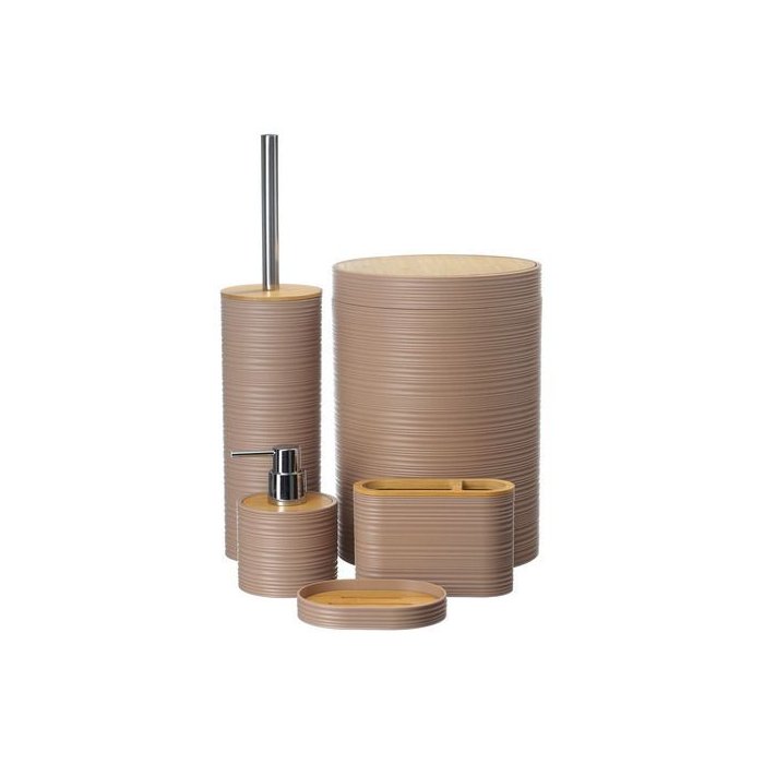 Kit Lixeira Acessórios Banheiro Escova Dispenser Líquido 104 Nude