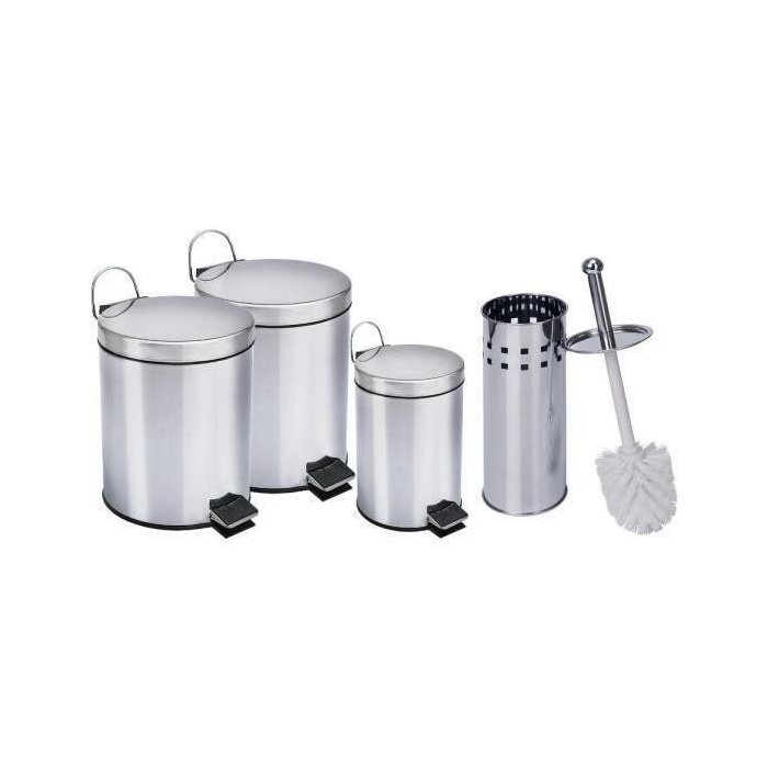 Característica Kit lixeira aço inox - 1 de 3l, 2 de 5l e 1 escova sanitária: