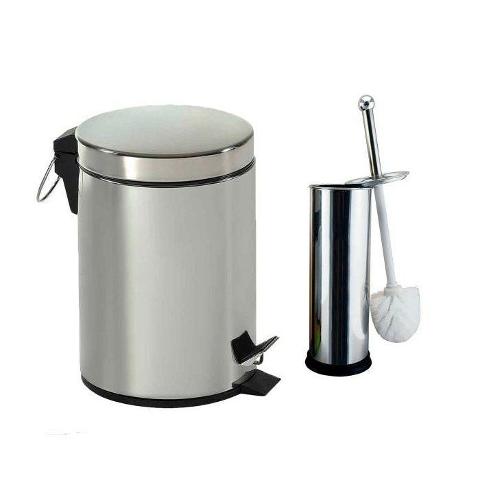 Kit Lixeira Inox Banheiro Cozinha Pedal E Balde 5 Lts + Esco