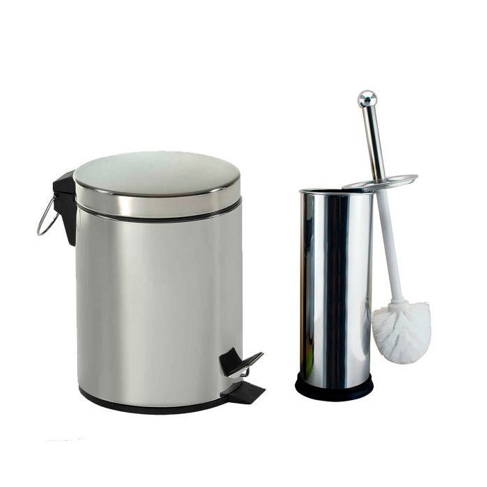 Kit Lixeira Inox Banheiro Pedal E Balde 3 Litros e Escova