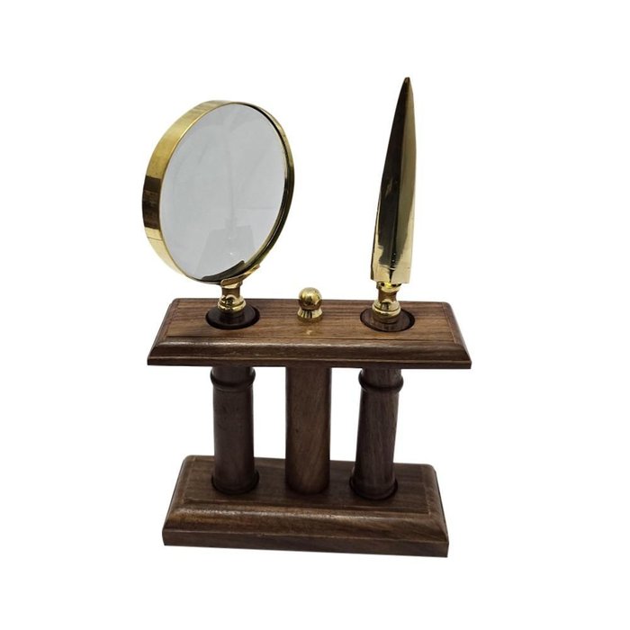 Kit Lupa e Abridor de Carta Madeira e Metal Dourado e Marrom