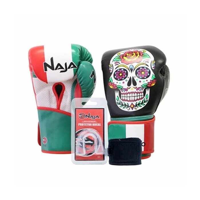 Kit Luva Boxe Muay Thai Competição Bandagem Bucal Países México Naja - 14oz