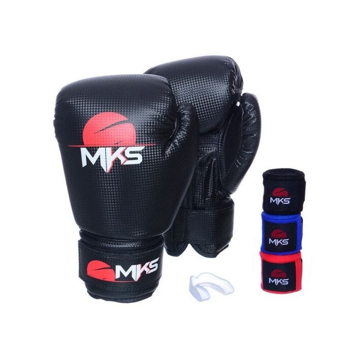 Kit Luva Boxe Prospect Mks Combat Preta com 3 Bandagem e Bucal Simples - 16 Oz