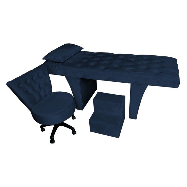 Kit Maca Estética Capitonê com Mocho e Escadinha 80 Cm Rosa Slk Decor Reta Azul Royal Azul Royal