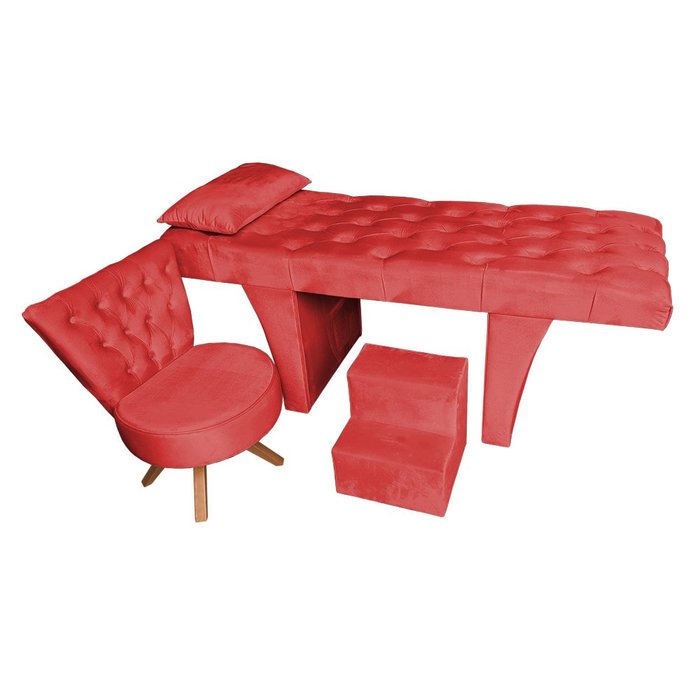 Kit Maca Estética Reta Capitonê com Mocho e Escadinha 80 Cm Preto Slk Decor Vermelho Vermelho