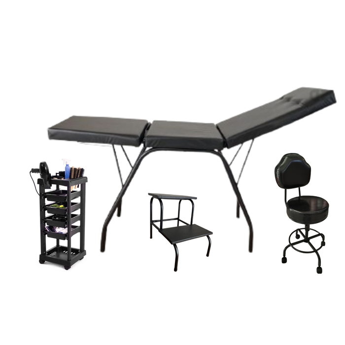 Kit Maca Móvel + Escada + Cadeira Mocho + Carrinho Salão