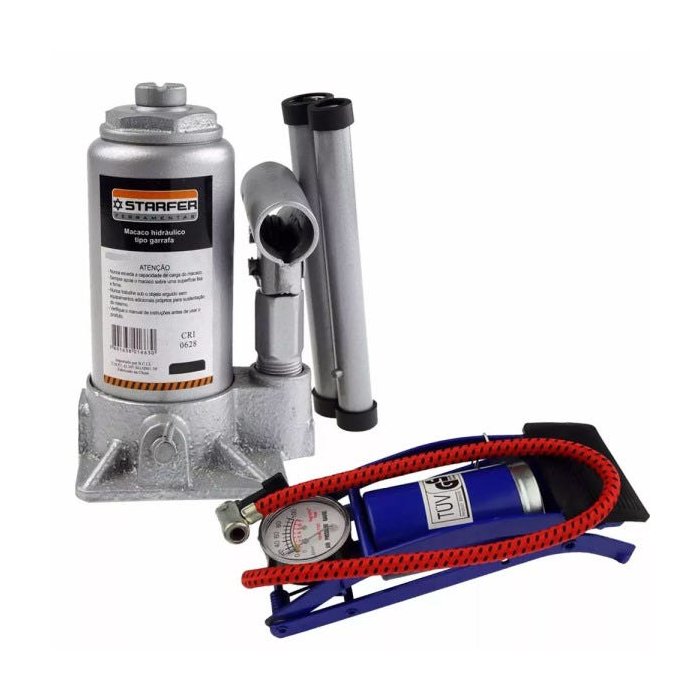 Kit Macaco Hidráulico Garrafa 32t e Cabo Bateria 500a Starfer