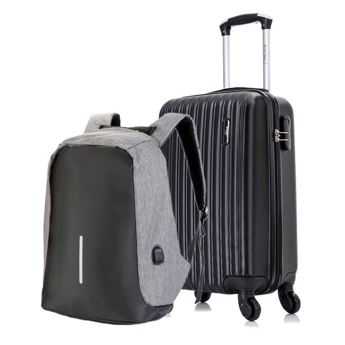 Kit Mala de Viagem de Bordo Londres Preta+ Mochila para Notebook Anti-furto Swiss Move