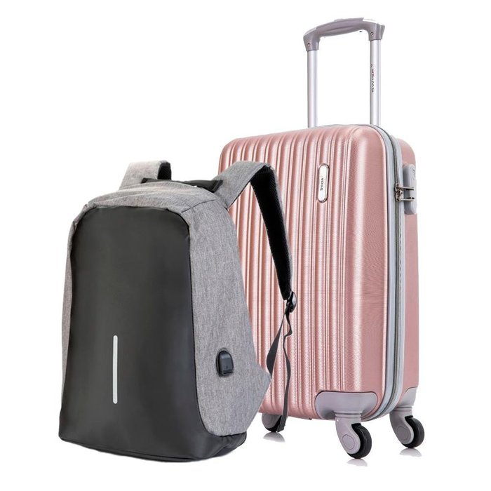 Kit Mala de Viagem de Bordo Londres Rose + Mochila para Notebook Anti-furto Swiss Move