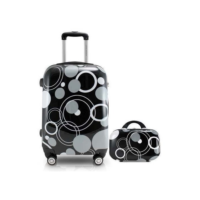 Descrição Mala: Ideal para viagens rápidas, a mala de bordo da Jacki Design possui rodinhas de 360 graus, alça ajustável, trava de segurança embutida. A parte interna é inteiramente forrada, possui compartimento e elástico interno para deixar tudo em ordem. Feito de material Policarbonato e ABS resistente, proporcionando mais proteção aos seus pertences. Viaje com mais estilo e segurança! Composição: Policarbonato + ABS. Tamanho: Comprimento: 34cm, Largura: 23cm, Altura: 48cm Descrição Frasqueira: A frasqueira da Jacki Design é essencial para a sua viagem! Feito de material Policarbonato e ABS resistente. Possui um amplo espaço interno, divisória central com bolsos organizadores e alça carona para usá-la em conjunto com a sua mala de viagem. Ideal