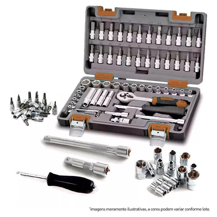 Garantia legal de 90 dias para defeito de fabricação. Marca: Fortt | Cor: Preto | Modelo: KJC001-P | Produto: Jogo de Chave Catraca | Peças: 57