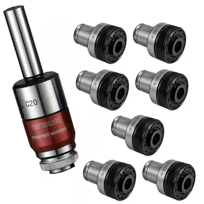 Kit Mandril Flutuante M3 a M12+ Pinça Porta Macho M3 a M12 O Mandril é uma ferramenta de formato cônico utilizado para receber peças de variados diâmetros. ESPECIFICAÇÕES: - Capacidade de fazer rosca: M3 a M12;