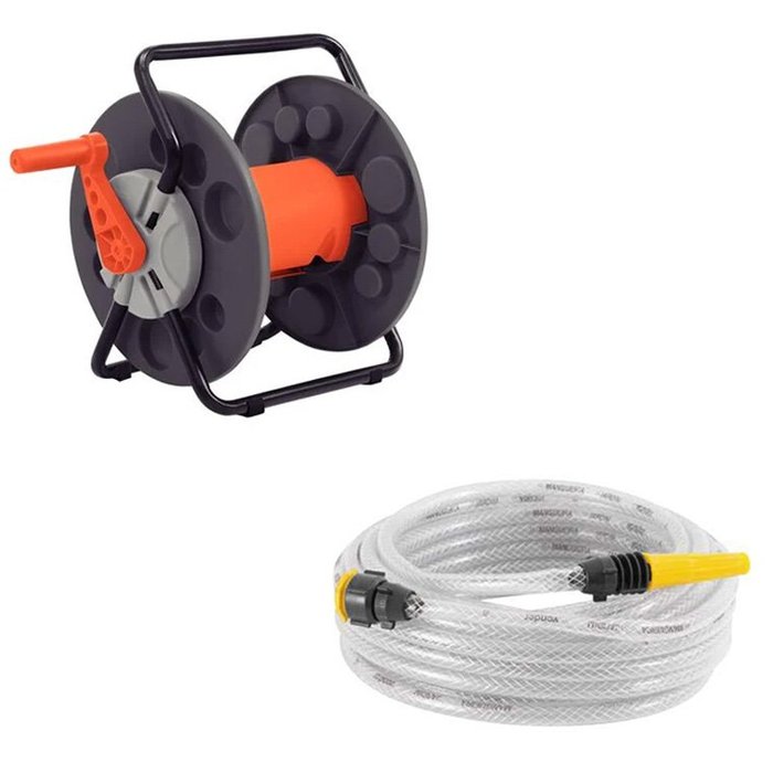 - Capacidade de armazenamento de até 55 metros de mangueira 1/2. Este é apenas um valor de referência, considerando uma mangueira de 1/2. O valor pode variar para mais ou para menos, dependendo do modelo e do diâmetro da mangueira.