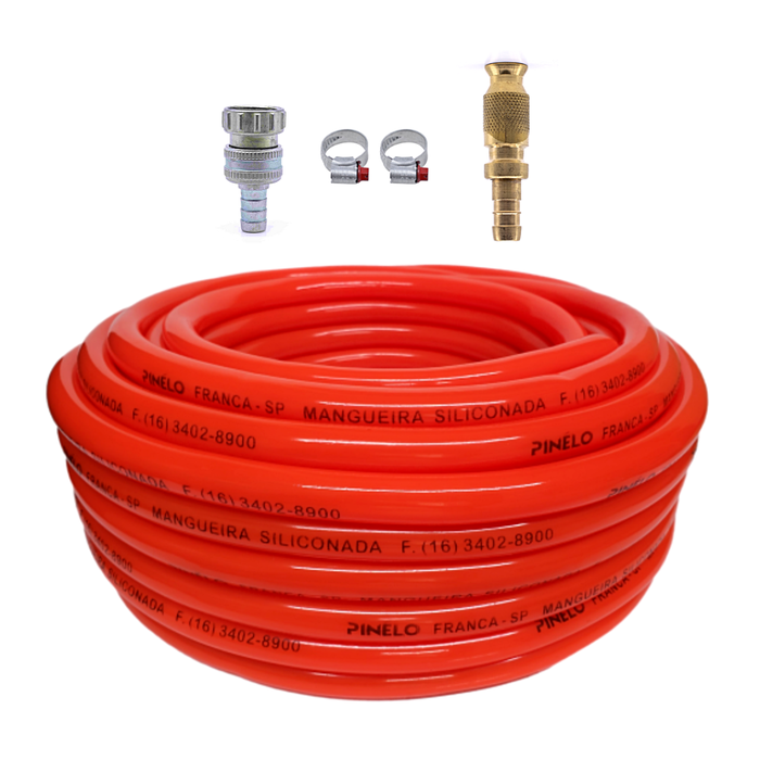 kit mangueira siliconada engate zamak e esguicho hal latão laranja 20m