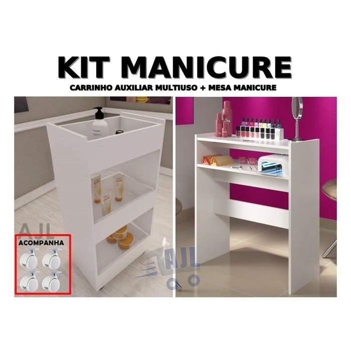 Kit Manicure Mesa 7 C/alças Mais Expositor Esmaltes 80cm AJL Carrinho para Manicure