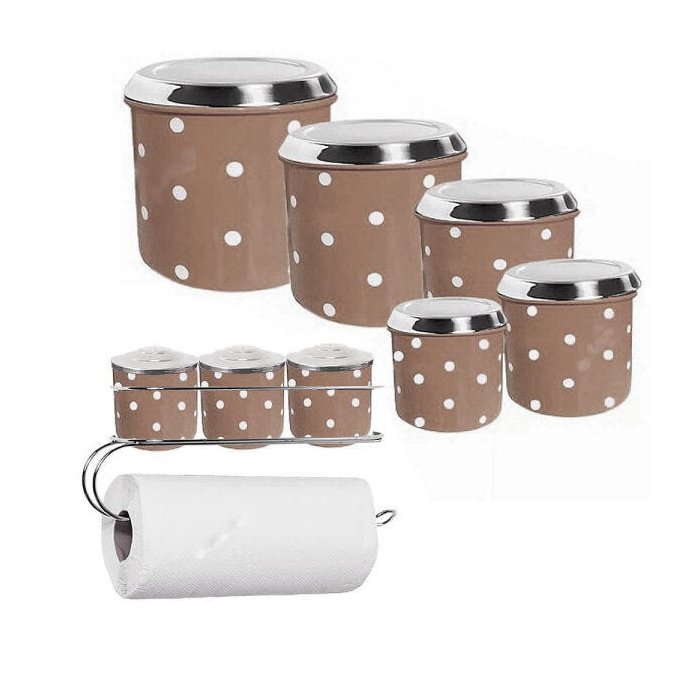 Kit Mantimento Potes Cozinha Condimento Marrom Poa 016