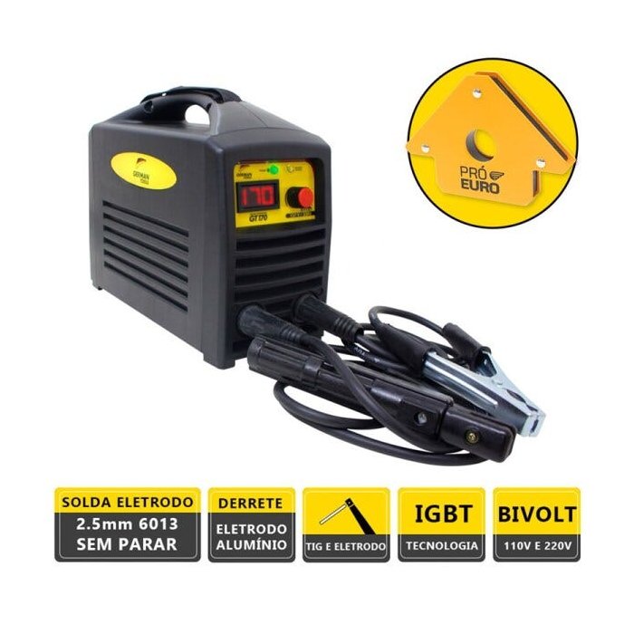 Kit Máquina Solda Inversora German Tools GT 170a bivolt + 1 Esquadro 12kg