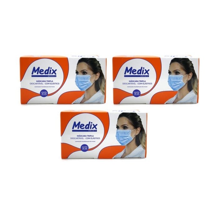 Kit Máscara Tripla Descartável Medix Branca Caixa 50un - 3 Unidades